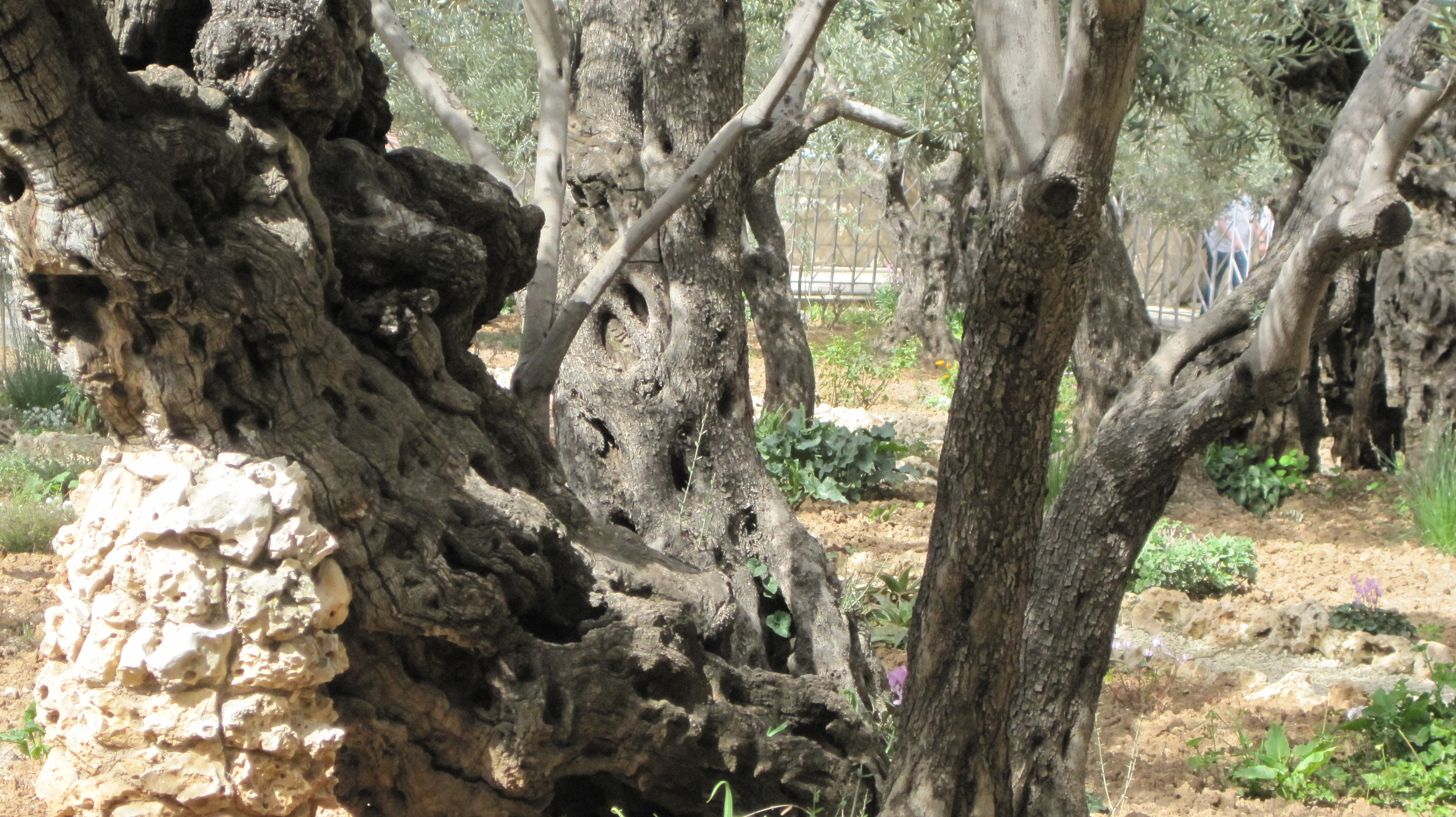 In the Garden of Gethsemene, there is an orchard of olive trees. Olive trees are fascinating. They can live for as long as 900 years. But when they die, they do not just rot away. Their roots give way to new growth, to new shoots. So, even though the tree has died, it lives on in a new tree. Here’s one that I took a picture of last year. The oldest tree is on the bottom left. It’s at least 2,000 years old (which means it was alive that night when Jesus came here with the disciples!). The trunk that is leaning against it is probably about 900 years old. The trunk springing from that is probably 200 years old. And the young tree on the right is probably just a few years old. It is the new shoot. But it does not exist alone. It is growing from the roots of centuries of growth. What a great image! New shoots, new thoughts, new ideas do not replace the old. They grow from it.